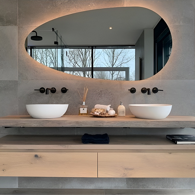 Зеркала без обрамления любых форм и размеров для реализации самых смелых дизайнерских решений.