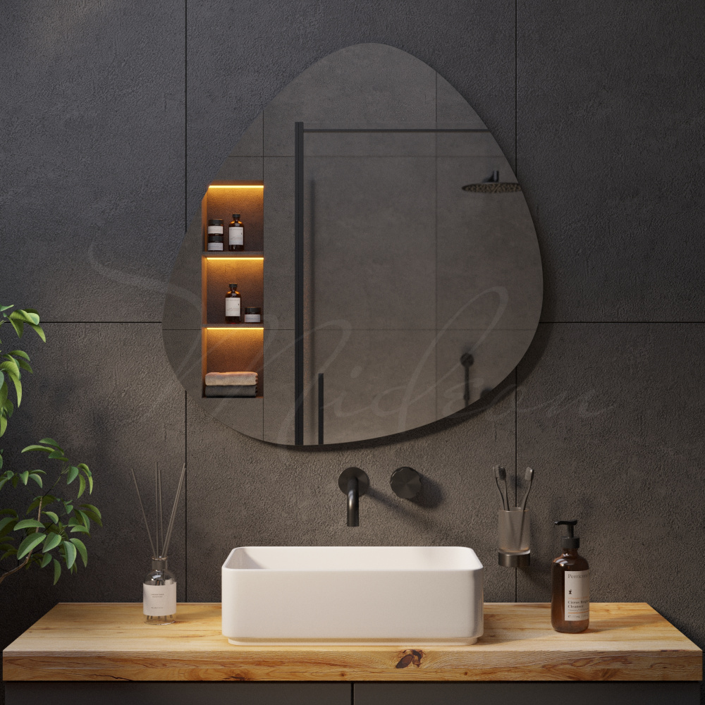 Все наши зеркала с подсветкой необычной формы имеют толщину всего 24 мм благодаря применению современной LED (светодиодной) подсветки, премиальных комплектующих и собственным производственным наработкам.